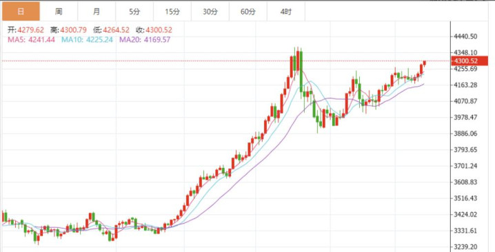 现货黄金向上触及4300美元, 为10月21日以来首次